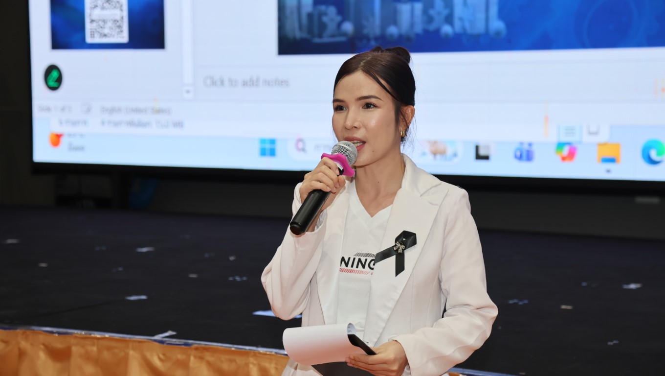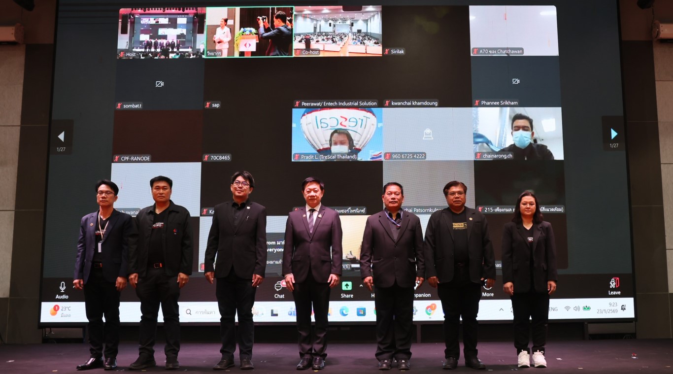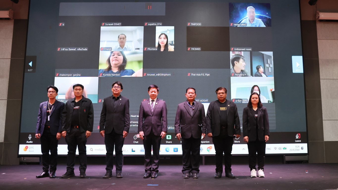 - ดร.นฤดม นวลขาว หัวหน้ากลุ่มงานพัฒนาธุรกิจ ฝ่ายนโยบายและ ยุทธศาสตร์ มว. กล่าวรายงาน
