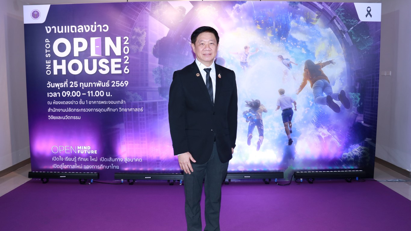 กระทรวงการอุดมศึกษา วิทยาศาสตร์ วิจัยและนวัตกรรม (อว.) แถลงข่าว จัดงาน “One Stop Open House 2026″ ภายใต้แนวคิด “Open Mind Open Future” ระหว่างวันที่ 6 – 8 มีนาคม 2569 ณ ศูนย์การประชุมแห่งชาติสิริกิติ์ โดยมีเป้าหมายเพื่อเป็นเวทีกลางเชื่อมโยงข้อมูลด้านการศึกษา อาชีพ และโอกาสทางการพัฒนาศักยภาพของเยาวชนไทยอย่างครบวงจร ทั้งในด้านการเข้าถึงหลักสูตรจากมหาวิทยาลัยทั่วประเทศในสถานที่เดียว การแนะแนวเส้นทางอาชีพ รวมถึงการพัฒนา Soft Skills และ Future Skills ที่จำเป็นสำหรับโลกในศตวรรษที่ 21 โดยมี นายสุรศักดิ์ พันธ์เจริญวรกุล รัฐมนตรีว่าการกระทรวงการอุดมศึกษา วิทยาศาสตร์ วิจัยและนวัตกรรม (รมว.อว.) เป็นประธานในการแถลงข่าว พร้อมด้วย ศ.ดร.ศุภชัย ปทุมนากุล ปลัดกระทรวง อว. และพลตำรวจโท พรชัย สุธีรคุณ ผู้อำนวยการสถาบันมาตรวิทยาแห่งชาติ (มว.) และผู้บริหารหน่วยงานภายใต้การกำกับดูแลของกระทรวง อว. เข้าร่วมงานในครั้งนี้
