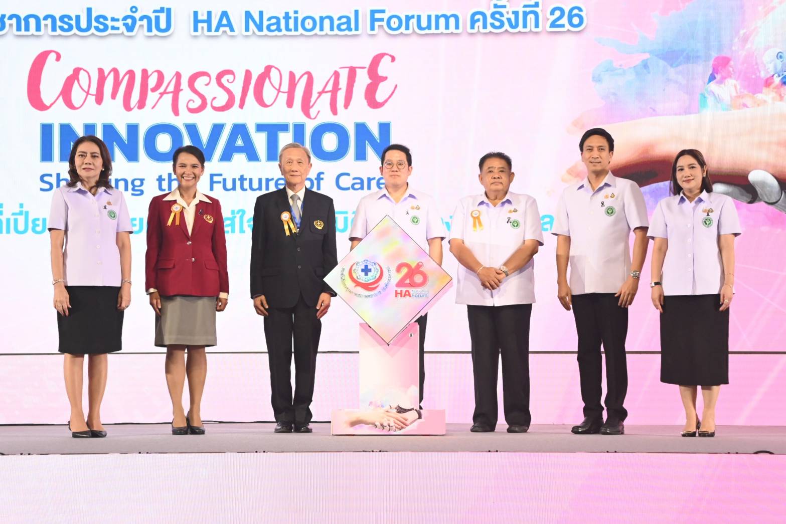นายพัฒนา พร้อมพัฒน์ รัฐมนตรีว่าการกระทรวงสาธารณสุข พร้อมด้วย ศ.เกียรติคุณ ดร.นพ.ประสิทธิ์ วัฒนาภา ประธานกรรมการสถาบันรับรองคุณภาพสถานพยาบาล และพญ.ปิยวรรณ ลิ้มปัญญาเลิศ ผู้อำนวยการสถาบันรับรองคุณภาพสถานพยาบาล) ร่วมเปิดการประชุมวิชาการประจำปี HA National Forum ครั้งที่ 26 ภายใต้แนวคิด “Compassionate Innovation: Shaping the Future of Care นวัตกรรมที่เปี่ยมไปด้วยความใส่ใจ สร้างมิติใหม่ของการดูแล” พร้อมมอบประกาศฯ รับรองคุณภาพสถานพยาบาลรัฐ-เอกชน กว่า 400 แห่ง ย้ำความสำคัญการพัฒนานวัตกรรมบริการคุณภาพ ควบคู่ความใส่ใจและหัวใจของความเป็นมนุษย์ ให้ระบบบริการสุขภาพของประเทศเป็นระบบที่ทันสมัย ตอบสนองต่อความหลากหลาย และพร้อมรับมือกับความท้าทายในอนาคต โดยมีผู้ป่วยเป็นศูนย์กลาง ซึ่งจัดโดยสถาบันรับรองคุณภาพสถานพยาบาล (องค์การมหาชน) (สรพ.)