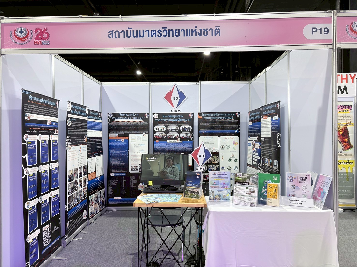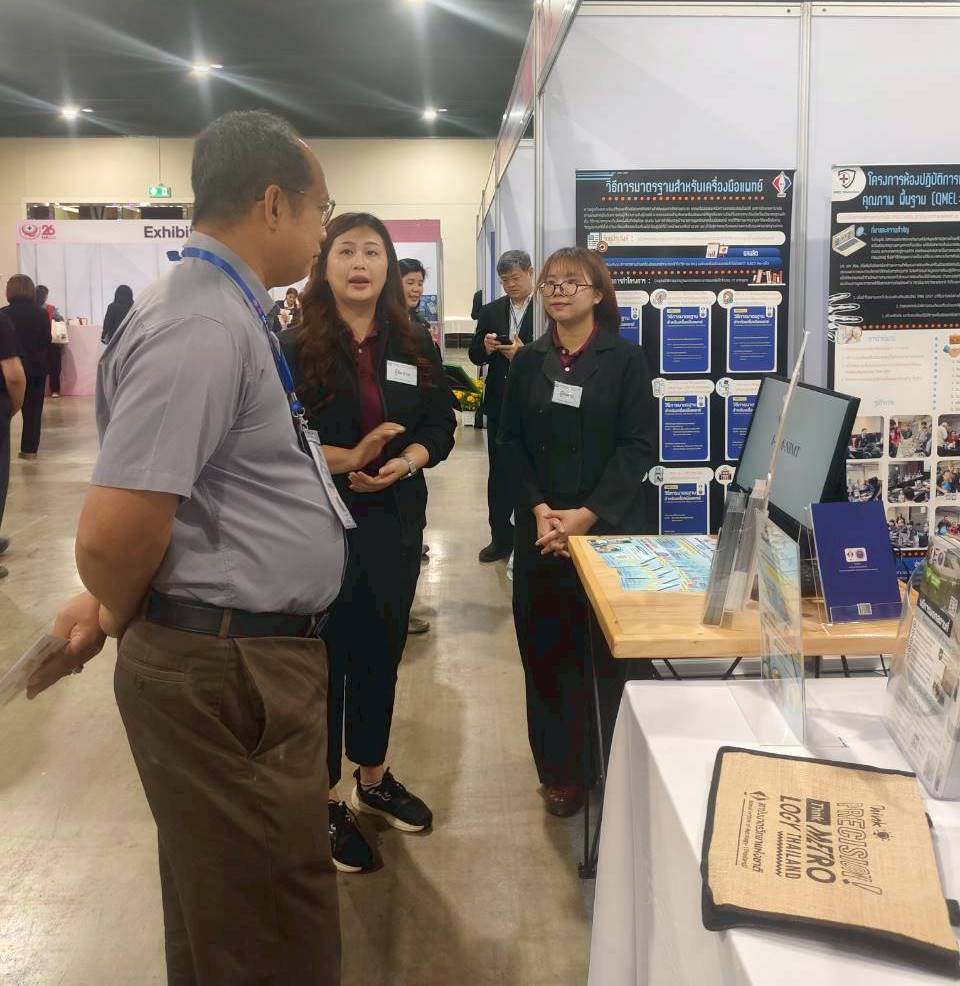 ในการนี้ สถาบันมาตรวิทยาแห่งชาติ (มว.) เข้าร่วมจัดนิทรรศการแสดงผลงาน “การดำเนินงานด้านมาตรวิทยา สนับสนุนส่งเสริม ห้องปฏิบัติการเครื่องมือแพทย์คุณภาพ เพื่อระบบคุณภาพอย่างยั่งยืน” โดยนำเสนอผลงานการดำเนินงานของ โครงการเครื่องมือวัดทางการแพทย์ ของ มว. ที่ผ่านมา อาทิ โครงการสนับสนุนและรับรองการบริหารจัดการเครื่องมือแพทย์ในสถานพยาบาล, โครงการบ่มเพาะและให้การรับรองความสามารถทางวิชาการด้านมาตรวิทยาทางการแพทย์, รวมไปถึงนำเสนอวิธีการมาตรฐานสำหรับเครื่องมือแพทย์ ที่เปิดให้ผู้สนใจสามารถดาวน์โหลดเอกสารหนังสือวิธีการมาตรฐาน โดยไม่มีค่าใช้จ่าย ได้ที่เว็บไซต์ เครือข่ายห้องปฏิบัติการเครื่องมือแพทย์ https://mel-network.com ซึ่งได้รับความสนใจจากผู้เข้าร่วมประชุม ที่เป็นบุคลากรทางการแพทย์ เข้ามาเยี่ยมชมนิทรรศการและร่วมกิจกรรมกับสถาบันเป็นจำนวนมาก