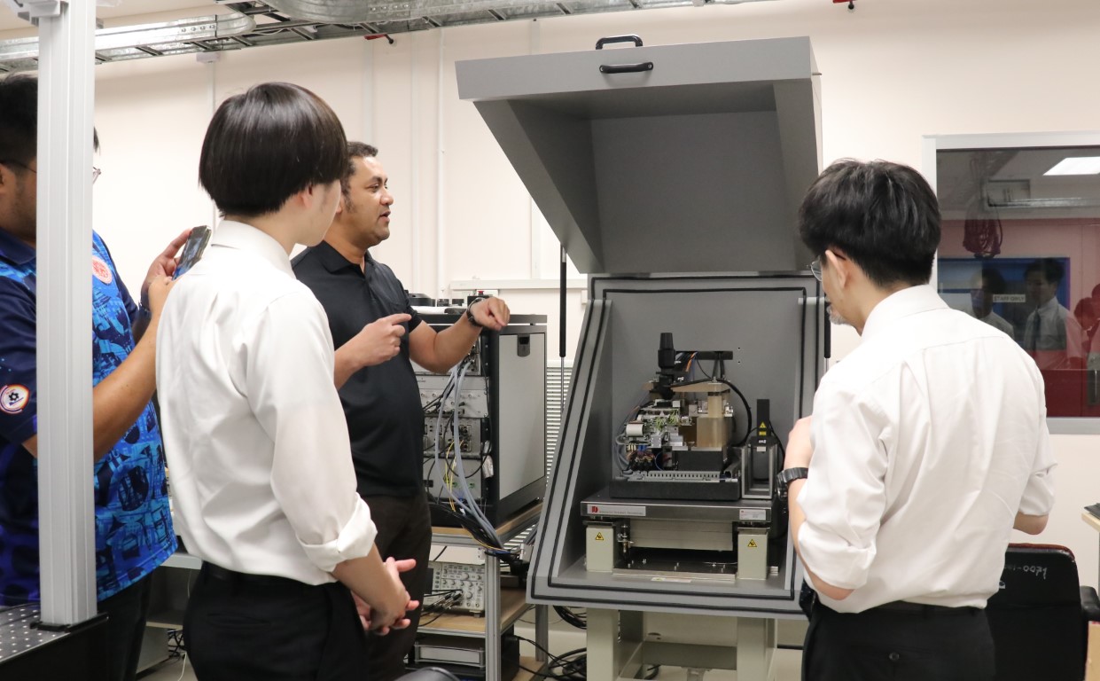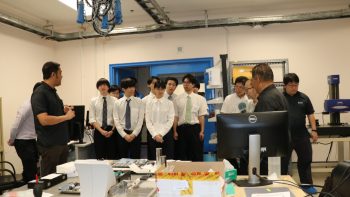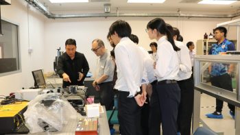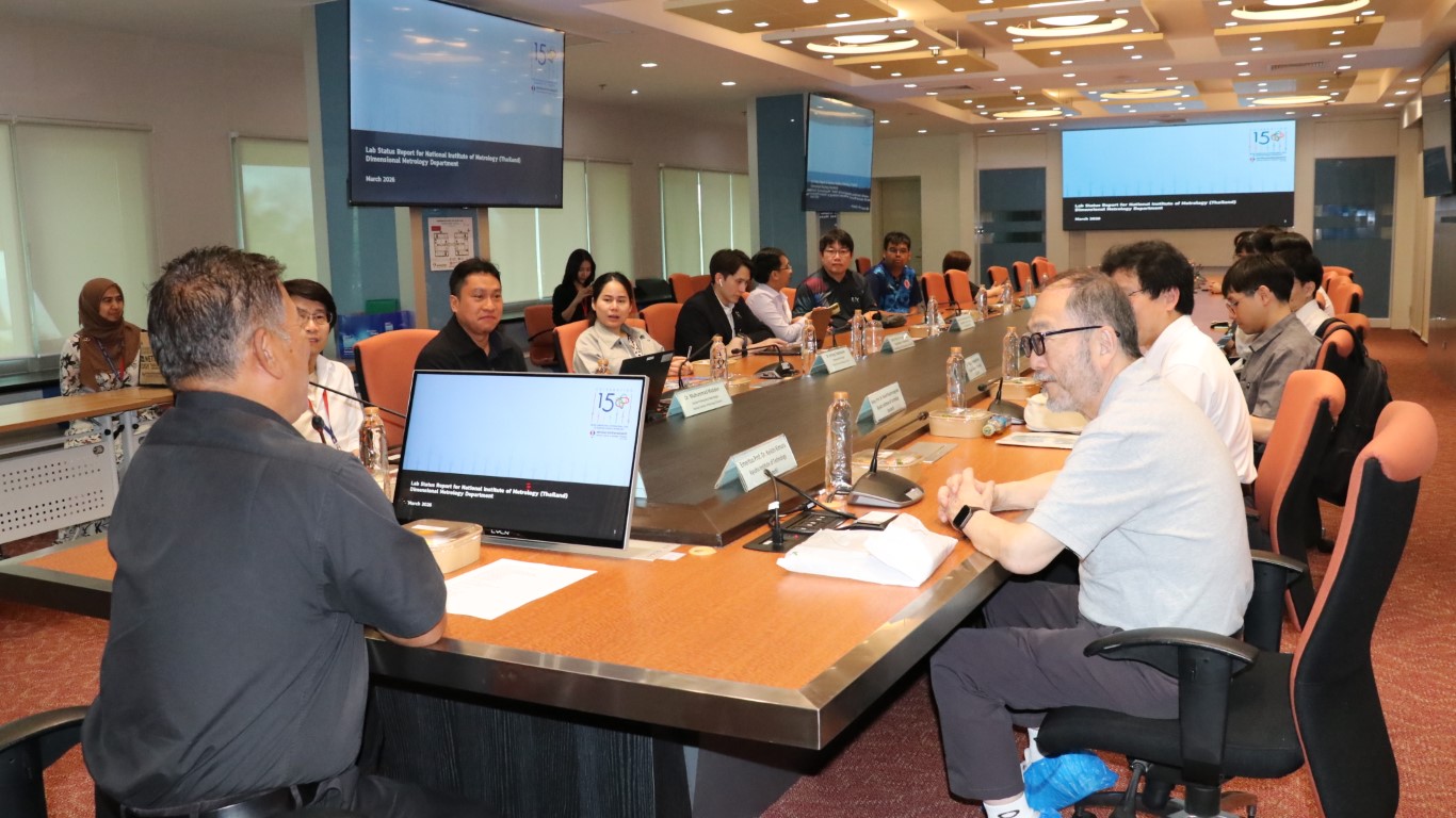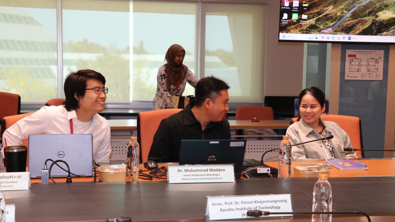 นายอนุสรณ์ ทนหมื่นไวย รองผู้อำนวยการ สถาบันมาตรวิทยาแห่งชาติ (มว.) พร้อมด้วย ดร.กิตติสัณห์ มงคลสุทธิรัตน์ หัวหน้ากลุ่มงานมาตรฐานปฐมภูมิความยาว ดร.มูฮัมหมัด หมัดเด็น หัวหน้าห้องปฏิบัติการรูปร่าง ดร.ธรรมรัตน์ สมทอง หัวหน้าห้องปฏิบัติการพื้นผิว ดร.อัชยา เทพพิทักษ์ศักดิ์ นักมาตรวิทยา ฝ่ายมาตรวิทยามิติ ให้การต้อนรับ Emeritus Prof. Dr. Keiichi Kimura, Assoc. Prof. Dr. Panart Khajornrungruang, Dr. Thitipat Permpatdechakul จาก Kyushu Institute of Technology (Kyutech), Asst. Prof. Dr. Aran Blattler, Asst. Prof. Dr. Teppakorn Sittiwanchai, Asst. Prof. Dr. Natthapon BUN-A-THUEK จาก King Mongkut’s University of Technology North Bangkok (KMUTNB) ในโอกาสนำนักศึกษาจาก Kyutech เข้าเยี่ยมชมห้องปฏิบัติการของฝ่ายมาตรวิทยามิติ โดยกิจกรรมการเยี่ยมชมดังกล่าวจัดขึ้น ณ อาคารผดุงมาตร (มว.) คลองห้า จังหวัดปทุมธานี