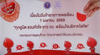 สำนักงานปลัดกระทรวงการอุดมศึกษา วิทยาศาสตร์ วิจัยและนวัตกรรม (สป.อว.) จัดกิจกรรม บริจาคโลหิต จิตอาสาทำความดี “ทุกยูนิต รวมหัวใจ ชาว อว. พร้อมใจบริจาคโลหิต ประจำปี 2569” โดยมีวัตถุประสงค์เพื่อให้บุคลากรในสังกัดกระทรวงการอุดมศึกษา วิทยาศาสตร์ วิจัยและนวัตกรรม ได้มีกิจกรรมร่วมกัน และเป็นเป็นการทำกิจกรรมจิตอาสา อันเป็นสาธารณประโยชน์ เนื่องในวันข้าราชการพลเรือน ในการนี้พนักงานของสถาบันมาตรวิทยาแห่งชาติ (มว.) ได้เข้าร่วมกิจกรรมบริจาคโลหิตดังกล่าวด้วย ณ ห้องแถลงข่าว ชั้น 1 อาคารพระจอมเกล้า สำนักงานหลัดกระทรวงการอุดมศึกษา วิทยาศาสตร์ วิจัยและนวัตกรรม (โยธี) กรุงเทพฯ