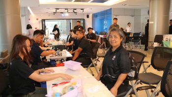 - บรรยากาศในการบริจาคโลหิตของพนักงาน มว.