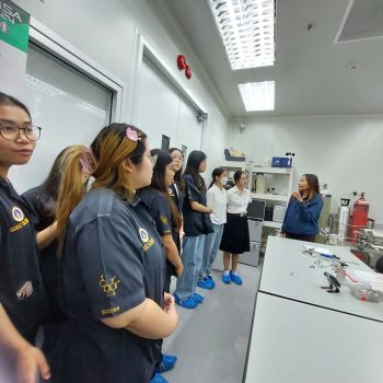 ดร.จีรพา บุญญคง หัวหน้ากลุ่มงานวิเคราะห์อินทรีย์เคมี ฝ่ายมาตรวิทยาเคมีและชีวภาพ สถาบันมาตรวิทยาแห่งชาติ (มว.) ให้การต้อนรับนักศึกษาจากภาควิชาเคมี คณะวิทยาศาสตร์ มหาวิทยาลัยมหิดล ในโอกาสเยี่ยมชมห้องปฏิบัติการ ฝ่ายมาตรวิทยาเคมีและชีวภาพของสถาบัน โดยมีวัตถุประสงค์เพื่อให้นักศึกษาได้เห็นการทำงานจริงในห้องปฏิบัติการ และสามารถนำความรู้ที่ได้จากการเยี่ยมชมไปประยุกต์ใช้กับการทำงานในอนาคตต่อไป กิจกรรมการเยี่ยมชมดังกล่าวจัดขึ้น ณ อาคารมาตรธำรง (มว.) คลองห้า จังหวัดปทุมธานี