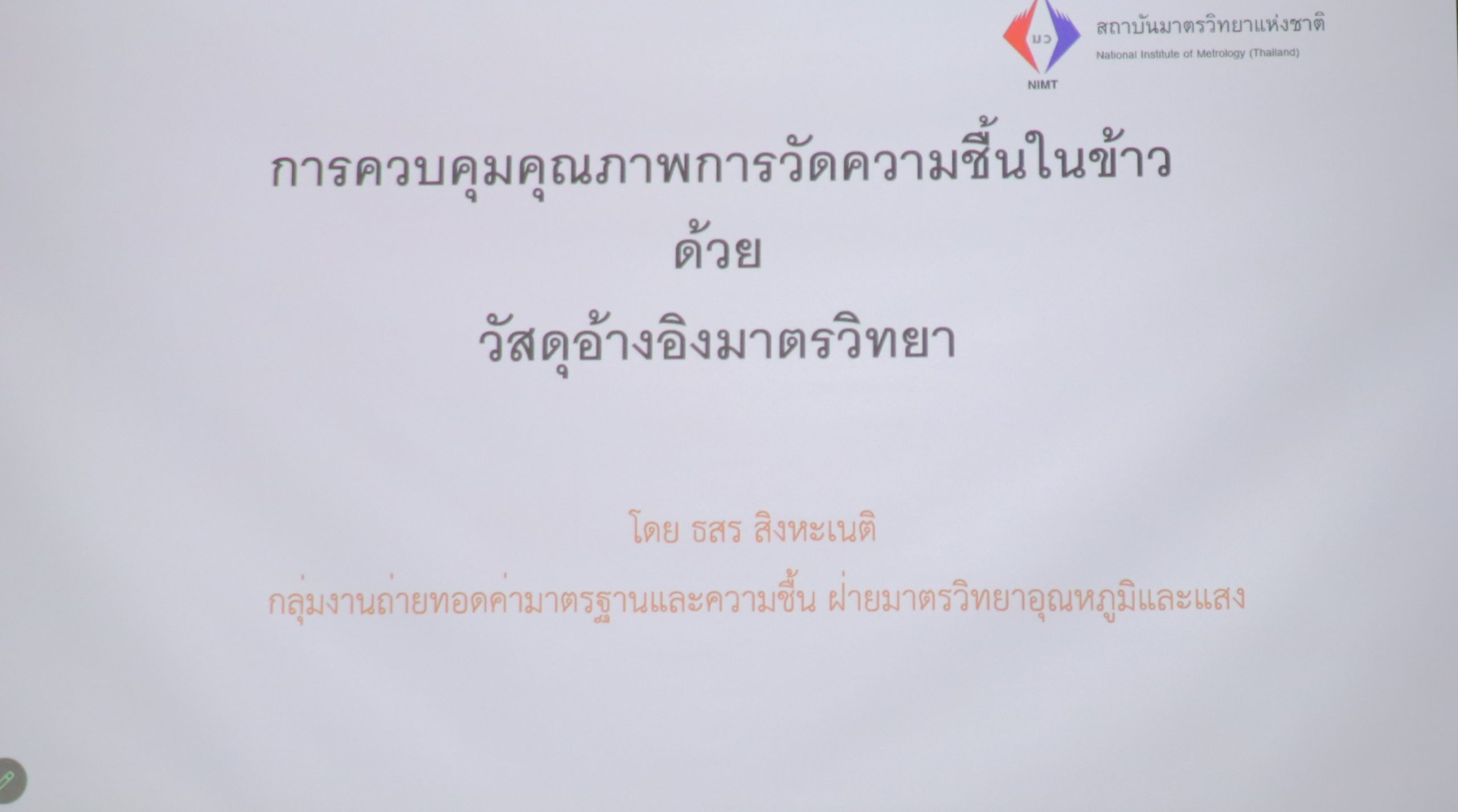 ฝ่ายมาตรวิทยาเคมีและชีวภาพ ร่วมกับฝ่ายมาตรวิทยาอุณหภูมิและแสง สถาบันมาตรวิทยาแห่งชาติ (มว.) จัดสัมมนาวิชาการ เรื่องการเสริมสร้างความเข้มแข็งทางด้านการวัดพารามิเตอร์สำหรับข้าวไทย และการ harmonize วิธีวัดความชื้นในข้าว การจัดสัมมนาครั้งนึ้ จัดขึ้นโดยมีวัตถุประสงค์เพื่อสร้างความตระหนักและให้ความรู้ด้านมาตรวิทยา รวมถึงเป็นศูนย์กลางในการแลกเปลี่ยนองค์ความรู้ต่าง ๆ ด้านการวัดและระบบคุณภาพให้แก่ผู้ที่สนใจ การจัดสัมมนาดังกล่าว ได้จัดทั้งในรูปแบบออนไซต์และออนไลน์ ณ อาคารมาตรธำรง (มว.) คลองห้า จังหวัดปทุมธานี