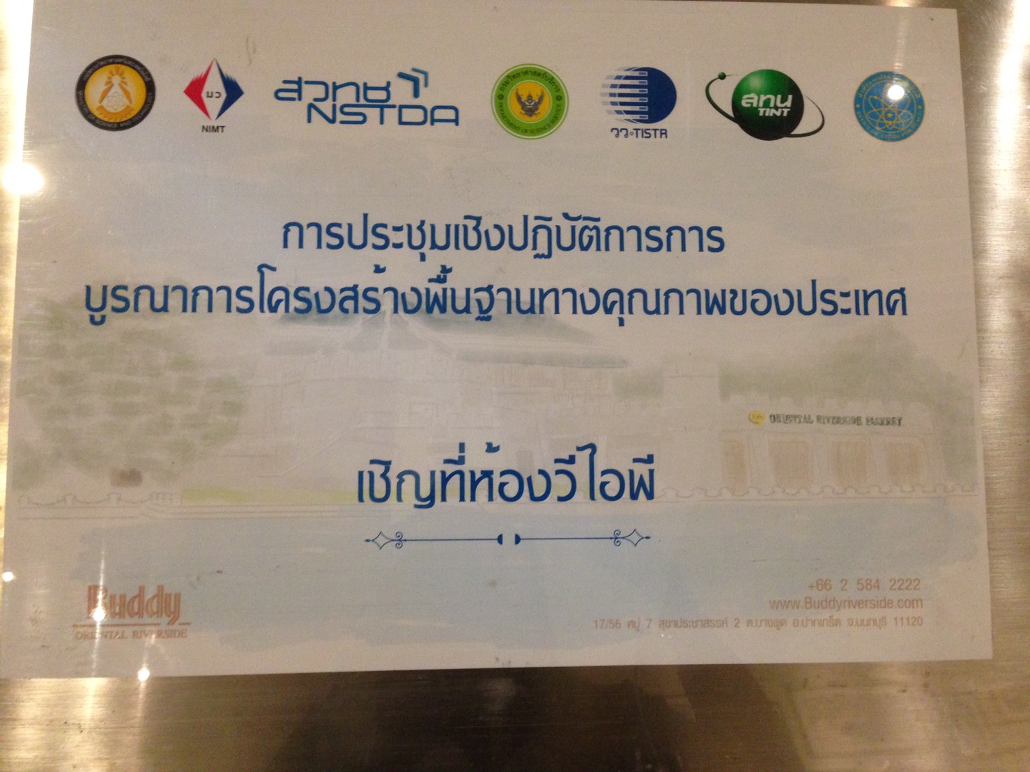 สถาบันมาตรวิทยาแห่งชาติ ในฐานะผู้แทนคณะทำงานจัดทำฐานข้อมูลและยุทธศาสตร์ห้องปฏิบัติการเชิงบูรณาการ การทดสอบมาตรฐานสินค้าเพื่อการส่งออก ซึ่งครอบคลุม การเทียบวัด การทดสอบ มาตรฐานและคุณภาพในภาพรวมทั้งระบบของประเทศ จัดประชุมเชิงปฏิบัติการการบูรณาการโครงสร้างพื้นฐานทางคุณภาพของประเทศ โดย นายประยูร เชี่ยววัฒนา ผู้อำนวยการ มว. ชี้แจงวัตถุประสงค์ของการประชุมเชิงปฏิบัติการ และนำเสนอสถานภาพปัจจุบันและความคืบหน้าในการดำเนินงานที่เกี่ยวกับโครงการบูรณาการโครงสร้างพื้นฐานทางคุณภาพของประเทศ ซึ่งในการประชุมครั้งนี้เป็นการประชุมร่วมกันระหว่าง หน่วยงานที่เกี่ยวข้องทั้งจากภาครัฐและเอกชน เช่น กรมวิทยาศาสตร์บริการ สถาบันวิจัยวิทยาศาสตร์และเทคโนโลยีแห่งประเทศไทย สำนักงานคณะกรรมการนโยบายวิทยาศาสตร์ เทคโนโลยีและนวัตกรรมแห่งชาติ สำนักงานปรมาณูเพื่อสันติ สถาบันเทคโนโลยีนิวเคลียร์แห่งชาติ(องค์การมหาชน) สำนักงานพัฒนาวิทยาศาสตร์และเทคโนโลยีแห่งชาติ ศูนย์ทดสอบผลิตภัณฑ์ไฟฟ้าและอิเล็กทรอนิกส์ สถาบันไฟฟ้าและอิเล็กทรอนิกส์ สำนักงานคณะกรรมการอาหารและยา ศูนย์เครื่องจักรกลการเกษตรแห่งชาติ ศูนย์นวัตกรรมเทคโนโลยีหลังการเก็บเกี่ยว สำนักงานมาตรฐานผลิตภัณฑ์อุตสาหกรรม กรมสนับสนุนบริการสุขภาพ สภาอุตสาหกรรม สมาคมสมองกลฝังตัวไทย กรมวิทยาศาสตร์การแพทย์ สำนักงานมาตรฐานผลิตภัณฑ์การเกษตรและอาหารแห่งชาติ ณ โรงแรมบัดดี้ โอเรียนทอล ริเวอร์ไซด์ จ.นนทบุรี