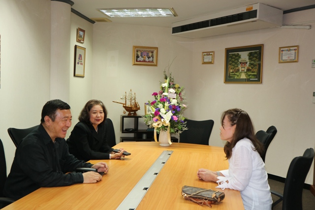 นางอัจฉรา เจริญสุข ผู้อำนวยการ มว. ให้การต้อนรับ ดร.ลักษมี ปลั่งแสงมาศ ผู้ว่าการ วว. และนายวิรัช จันทรา รองผู้ว่าการบริการอุตสาหกรรม สถาบันวิจัยวิทยาศาสตร์และเทคโนโลยีแห่งประเทศไทย (วว.) เพื่อแสดงความยินดีในโอกาสเข้ารับตำแหน่งผู้อำนวยการ มว. ณ อาคารสำนักงานกลาง มว. จ.ปทุมธานี