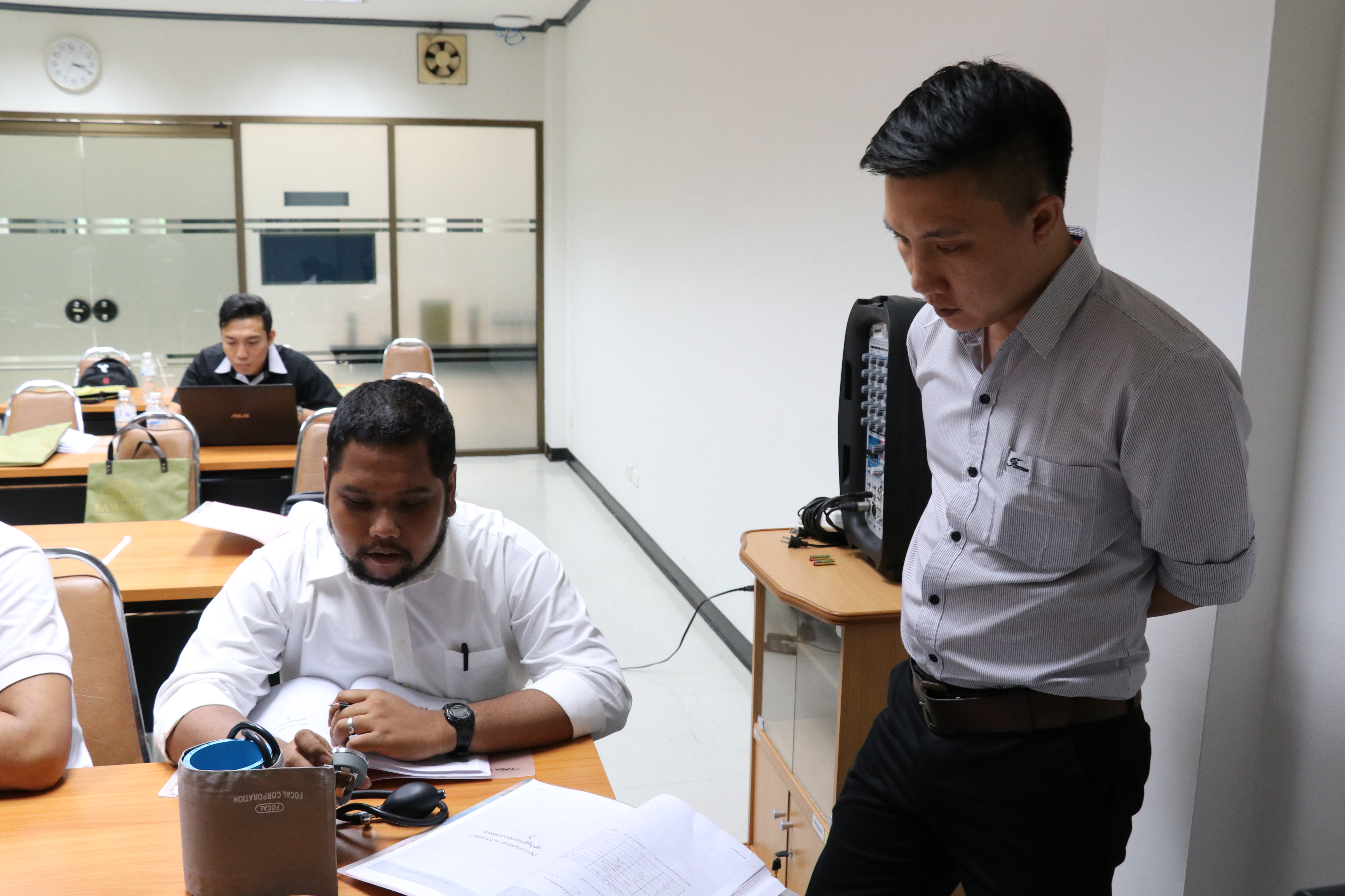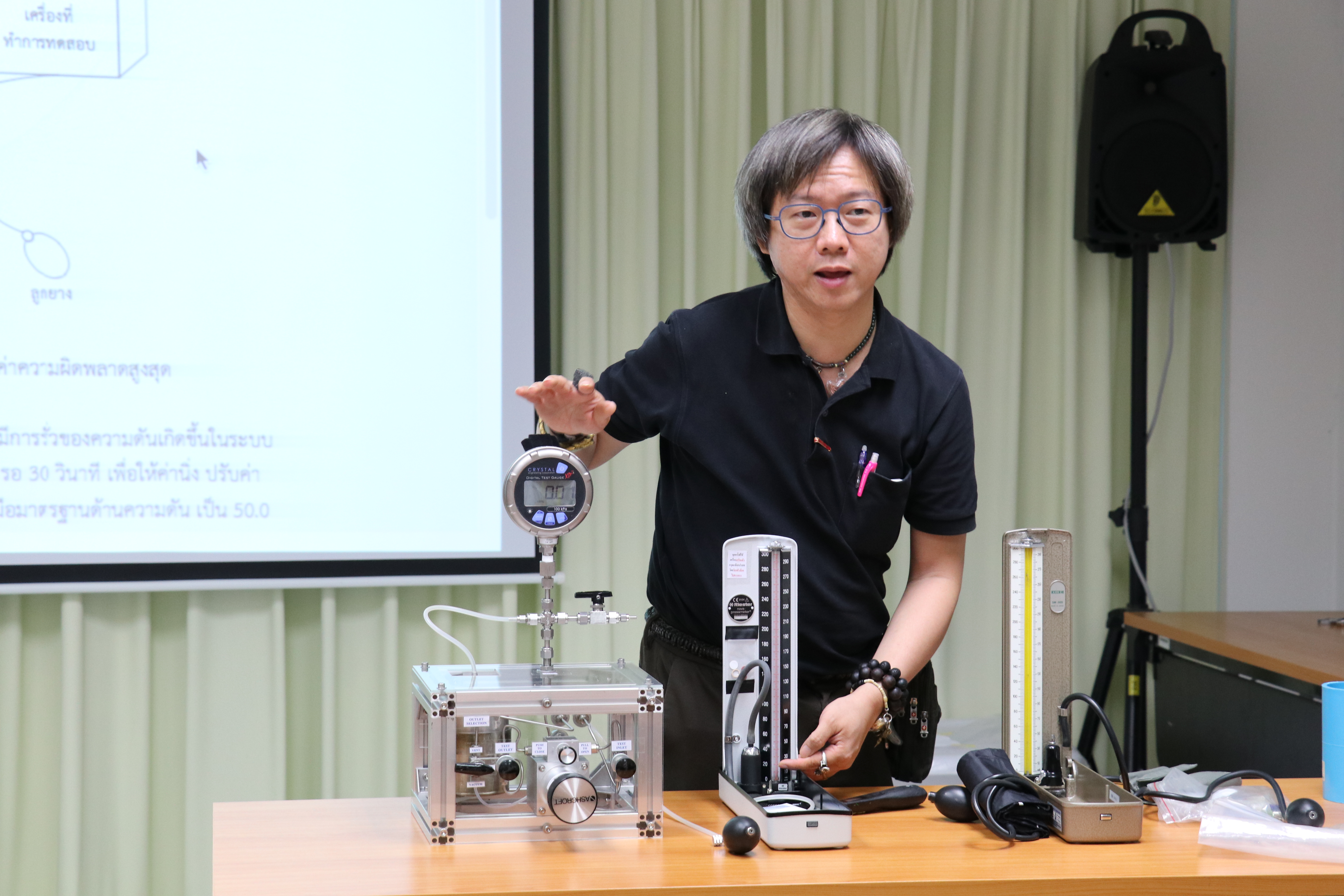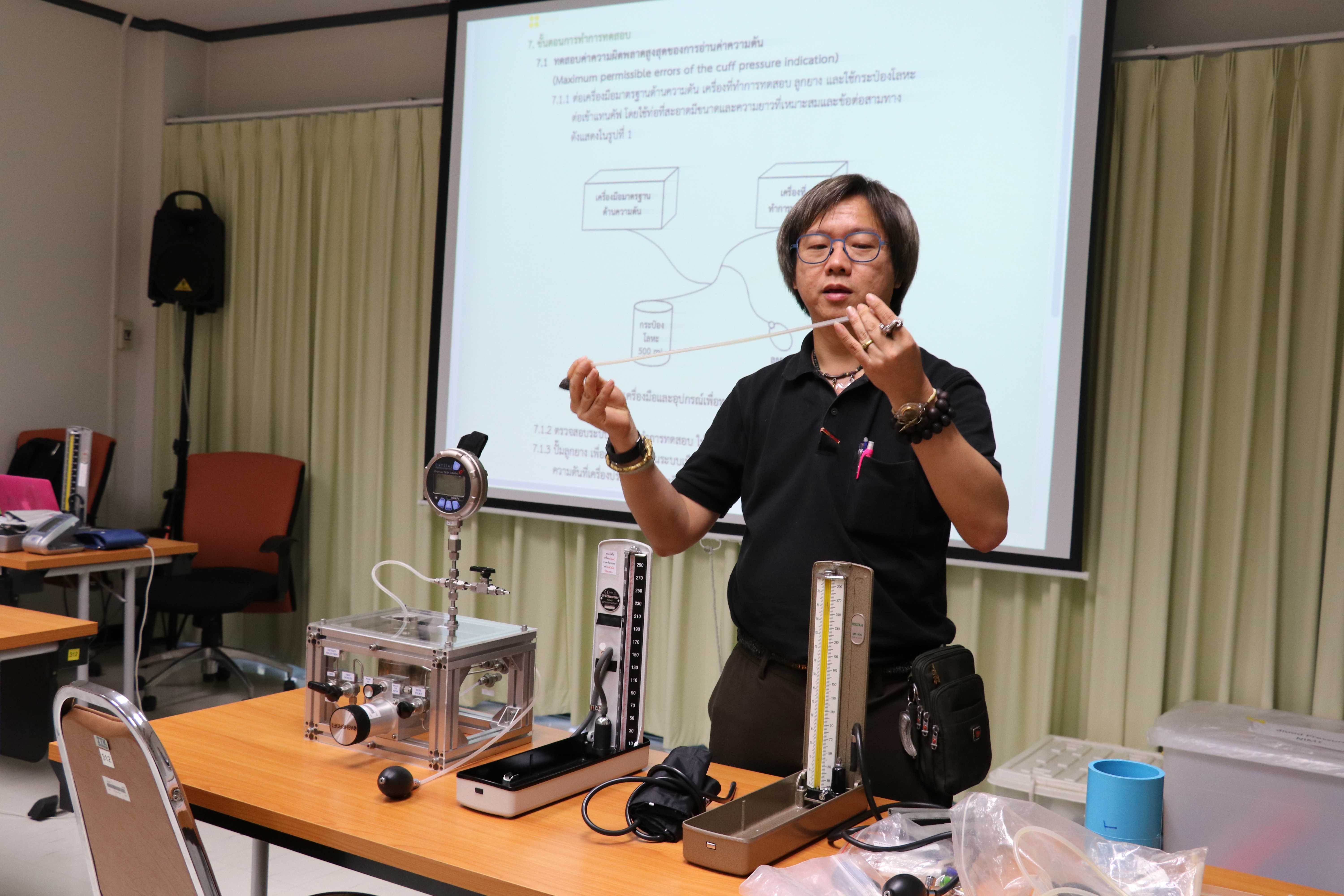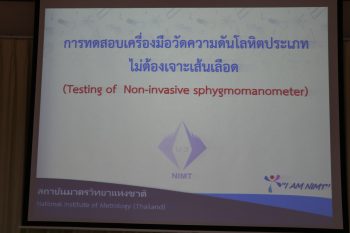 ส่วนฝึกอบรม กลุ่มพัฒนาธุรกิจ ฝ่ายนโยบายและยุทธศาสตร์ จัดอบรมหลักสูตร การทดสอบเครื่องมือวัดความดันโลหิตประเภทไม่ต้องเจาะเส้นเลือด ให้แก่ผู้สนใจทั้งภาครัฐและเอกชน บรรยายให้ความรู้โดย นายสุวัฒน์ พนากุลวิจิตร นักมาตรวิทยาชำนาญการ ห้องปฏิบัติการสุญญากาศ และนายเชวง คำนวนศักดิ์ นักมาตรวิทยาปฏิบัติการ ห้องปฏิบัติการความดัน กลุ่มงานกลศาสตร์ของไหล ฝ่ายมาตรวิทยาเชิงกล โดยมีวัตถุประสงค์เพื่อให้ผู้เข้าอบรมสามารถทดสอบ และใช้งานเครื่องวัดความดันโลหิตแบบไม่เจาะเส้นเลือดได้อย่างถูกต้อง ณ อาคารสำนักงานกลาง มว. จ.ปทุมธานี