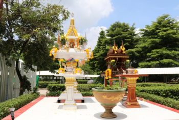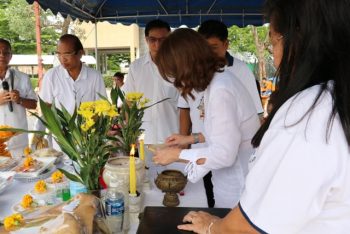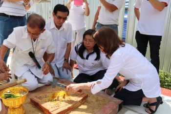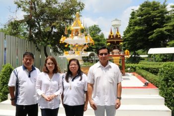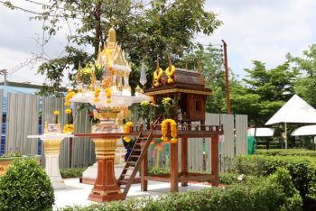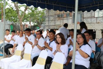 นางอัจฉรา เจริญสุข ผู้อำนวยการ มว. พร้อมผู้บริหารและพนักงาน เข้าร่วมในพิธีบวงสรวงศาลพระภูมิ ณ บริเวณก่อสร้างอาคารพัฒนาวัสดุอ้างอิงรับรองด้านมาตรวิทยา เทคโนธานี-คลองห้า จ.ปทุมธานี