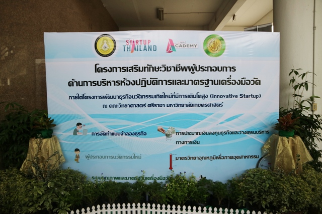 เพื่อให้บรรลุตามวัตถุประสงค์และเป้าหมายในการพัฒนามหาวิทยาลัยแห่งผู้ประกอบการ สถาบันมาตรวิทยาแห่งชาติ ( มว.) โดยกระทรวงวิทยาศาสตร์และเทคโนโลยีได้มีการส่งต่อองค์ความรู้ด้านมาตรวิทยาซึ่งเป็นเสาสำคัญในการสร้างและพัฒนาระบบคุณภาพที่จะเข้าไปช่วยเพิ่มมูลค่า และมาตรฐานให้แก่ นวัตกรรม ได้มีการวางแผนบูรณาการร่วมกับภาคการศึกษา เพื่อเป็นการปูพื้นฐานในเรื่องของมาตรวิทยาและเป็นการบ่มเพาะเมล็ดพันธุ์ใหม่ๆที่จำเป็นอย่างยิ่งในการสานต่อและเสริมสร้างระบบคุณภาพในอนาคต โดยในวันที่ 30 พฤษภาคม ที่ผ่านมา หัวเรือใหญ่ของสถาบันมาตรวิทยาแห่งชาติ นางอัจฉรา เจริญสุข ผู้อำนวยการ (ผมว.) พร้อมด้วยเรืออากาศโทอุทัย นรนิ่ม ผู้ช่วยผู้อำนวยการ (ผช.ผมว.) และ ดร. สมจิตต์ ปาละกาศ คณะบดีคณะวิทยาศาสตร์ ศรีราชา มหาวิทยาลัยเกษตรศาสตร์ ศรีราชา จับมือร่วมบูรณาการภายใต้โครงการ “เสริมทักษะวิชาชีพผู้ประกอบการด้านบริหารห้องปฏิบัติการและมาตรฐานเครื่องมือวัด ภายใต้โครงการพัฒนาธุรกิจนวัตกรรมเกิดใหม่ที่มีการเติบโตสูง (Innovative Startup)” ณ ห้องประชุมใหญ่ คณะวิทยาศาสตร์ ศรีราชา มหาวิทยาลัยเกษตรศาสตร์วิทยาเขตศรีราชา จ.ชลบุรีโดยมีวัตถุประสงค์เพื่อเสริมสร้างความรู้ความเข้าใจเกี่ยวกับธุรกิจ Startup และมาตรฐานห้องปฏิบัติการกับระบบคุณภาพ ISO/IEC 17025 ให้แก่นิสิตและบุคลากรห้องปฏิบัติการ ซึ่งจะเป็นการเปิดโอกาสให้นิสิตเป็นผู้ประกอบการใหม่เชิงสร้างสรรค์และนวัตกรรม และบุคลากรห้องปฏิบัติการมีแนวทางในการยกระดับห้องปฏิบัติการให้มีมาตรฐานตามระบบคุณภาพ ISO/IEC 17025 ได้ ซึ่งงานนี้นางอัจฉราได้ให้ความรู้ ในเรื่องของ การเตรียมความพร้อมสำหรับธุรกิจ Startup และธุรกิจให้บริการวิเคราะห์ ทดสอบ และสอบเทียบ และเรืออากาศโท อุทัย ได้บรรยายเกี่ยวกับ ห้องปฏิบัติการ วิเคราะห์ ทดสอบ และสอบเทียบตามมาตรฐาน ISO/IEC 17025
