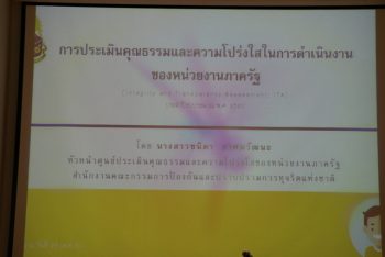 นายอนุสรณ์ ทนหมื่นไวย ผู้ช่วยผู้อำนวยการ เป็นประธานเปิดการอบรมในหัวข้อ “การประเมินคุณธรรมและความโปร่งใสในการดำเนินงานของหน่วยงานภาครัฐ” บรรยายให้ความรู้ โดย นางสาวชนิดา อาคมวัฒนะ หัวหน้าศูนย์ประเมินคุณธรรมและความโปร่งใสของหน่วยงานภาครัฐ สำนักงานคณะกรรมการ ป.ป.ช. และระดมสมองเพื่อการวิเคราะห์ความเสี่ยงในการปฏิบัติงานที่อาจเกิดผลประโยชน์ทับซ้อน โดยมีวัตถุประสงค์เพื่อถ่ายทอดความรู้ด้านกฎหมาย ภายใต้โครงการการนำความรู้มาเพิ่มประสิทธิภาพและประสิทธิผลในการทำงาน และเพื่อถ่ายทอดความรู้เกี่ยวกับการประเมินคุณธรรมและความโปร่งใสในการดำเนินงานของหน่วยงานภาครัฐ ให้แก่พนักงาน ณ อาคารสำนักงานกลาง มว. จ.ปทุมธานี