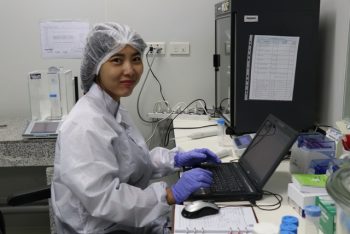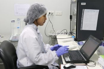 - Ms.Christine ELISHIAN ระหว่างภาคปฏิบัติในห้องปฏิบัติการวิเคราะห์อนินทรีย์เคมี
