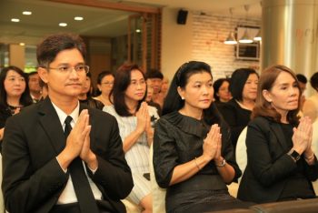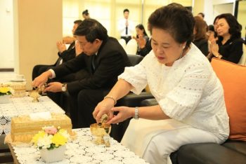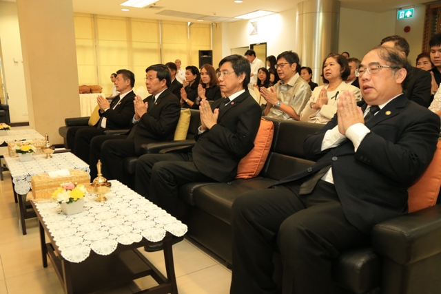 - นางอัจฉรา เจริญสุข ผู้อำนวยการ มว. และนายประเวศน์ มหารัตน์สกุล ผู้จัดการบริหารกลาง มว. ร่วมพิธีทำบุญตักบาตร