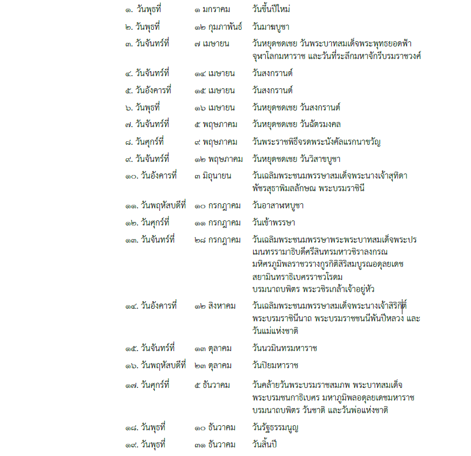 ประกาศ เรื่อง วันหยุด ปี 2568